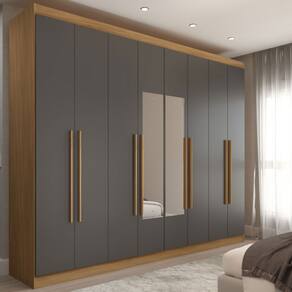 O(a) Guarda-Roupa Ele e Ela 8 Portas 4 Gavetas com Espelho Cinamomo/Cinza - Loja é produzido em MDP na escala de brilho Semi-Fosco, e possui um grau de dificuldade de montagem: Médio.