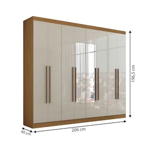 O(a) Guarda-Roupa Ele e Ela 8 Portas 8 Prateleiras com Espelho Cinamomo/Off White - Loja é produzido em MDP na escala de brilho Fosco, e possui um grau de dificuldade de montagem: Médio.