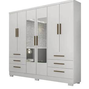 Guarda roupa Solteiro 6 portas 6 gavetas telescópicas Encanto - NOVO HORIZONTE Guarda Roupa Solteiro Encanto 6 Portas 6 Gavetas Telescópicas: organização e elegância para o seu quarto! O Guarda Roupa Solteiro Encanto 6 Portas 6 Gavetas Telescópicas da Novo Horizonte é a escolha ideal para quem busca um móvel completo, prático e funcional para organizar suas roupas e acessórios. Com design moderno e linhas retas, o Guarda Roupa Encanto se integra perfeitamente à sua decoração, proporcionando um visual organizado e sofisticado ao quarto. Detalhes que fazem a diferença: Espaço amplo: O guarda roupa possui 6 portas de bater e 6 gavetas com corrediças telescópicas, oferecendo amplo espaço para guardar roupas, calçados, acessórios e outros pertences.Organização: As gavetas com corrediças telescópicas facilitam o acesso aos seus pertences, permitindo que você visualize tudo o que está guardado.Cabideiros em alumínio: Os cabideiros em alumínio são mais resistentes e duráveis que os de madeira, além de serem mais fáceis de limpar.Acabamento em pintura UV: O acabamento em pintura UV de alta qualidade garante beleza e durabilidade ao guarda roupa, além de ser fácil de limpar.Qualidade Novo Horizonte: A Novo Horizonte é uma empresa renomada no mercado de móveis, reconhecida pela qualidade de seus produtos e pelo excelente atendimento ao cliente. Características: