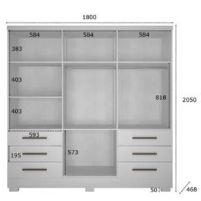 Dimensões do guarda roupa: Altura: 205 cmLargura: 1,80 cmProfundidade: 46,5 cm