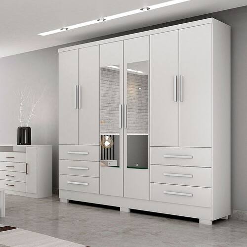 Guarda-roupa Encant 6 portas 6 gavetas com espelho com 6 pes 100 MDP, gavetas com corredicas telescopicas, puxadores com acabamento amadeirado, dobradica de pressao 26mm, cabideiro longo em aluminio, excelente divisao interna, kit pes incluso.