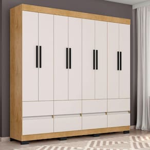 Transforme seu espaco com o Guarda Roupa Esmeralda da Araplac, uma combinacao perfeita de elegancia e funcionalidade. Este guarda roupa espacoso oferece amplo armazenamento com suas 8 portas e 8 gavetas bem distribuidas 2 cabideiros robustos e 4 prateleiras internas, permitindo que voce organize roupas, acessorios e objetos pessoais de maneira eficiente, uma solucao completa para a organizacao do seu espaco.