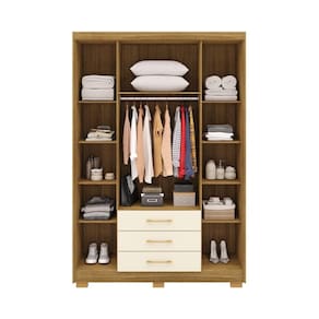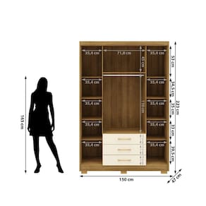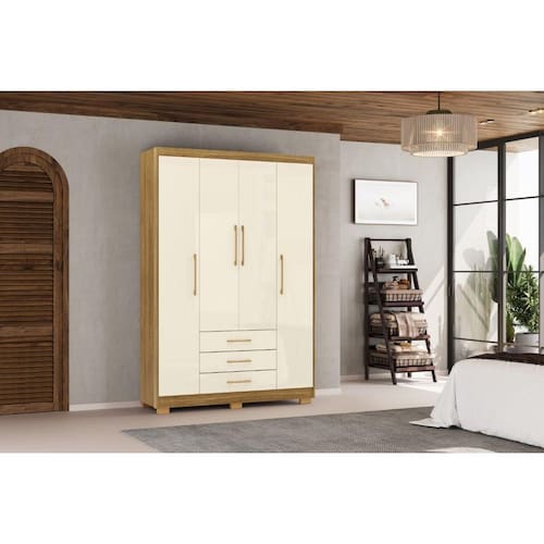 "O guarda-roupa Casal Espanha é a escolha ideal para quem busca elegância e funcionalidade em um único móvel. Com suas 4 portas e 3 gavetas, ele oferece amplo espaço para organizar roupas e acessórios de forma prática. A frente é confeccionada com espessura de 15 mm, enquanto o corpo, com 12 mm, proporciona equilíbrio entre robustez e leveza. As gavetas contam com corrediças metálicas, garantindo suavidade ao abrir e fechar, e os puxadores em plástico são discretos e modernos. O cabideiro de alumínio completa o design, oferecendo resistência para suportar as peças penduradas, tornando o Espanha um item indispensável para qualquer quarto.