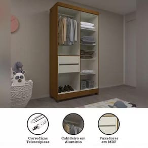 Guarda Roupa Genova 4 portas e 2 gavetas internas da Luciane e um produto bonito que alem de otimizar a organizacao, vai valorizar a decoracao do seu ambiente. Produzido em MDP com excelente acabamento em pintura UV que garante maior durabilidade e resistencia ao produto.