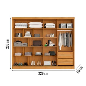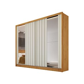 Guarda-Roupa Europa Mademarques Córdoba com espelho, 2 portas de correr, 4 gavetas e 15 prateleiras - 226 cm de Largura - Peroba/Off White
