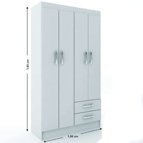 O Guarda Roupa Evidencia 4 Portas, estrutura em MDP de 12mm e 15mm, acabamento com pintura em Branco (Brilho). Portas com dobradiças metálicas, gavetas com corrediças plásticas, puxadores, cabideiro em madeira. Este móvel chegará em sua casa separado em 01 volume.