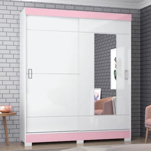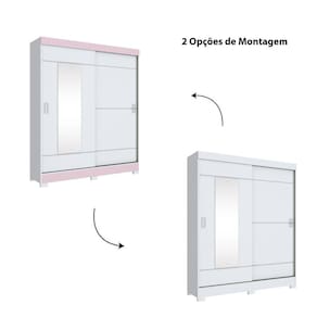 Guarda Roupa Flex 2 Portas de correr 2 Gavetas e Espelho - Branco/Rosa Chá