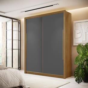 Contém 2 portas deslizantes, 6 prateleiras, 3 nichos, 2 cabideiros e 3 gavetas com corrediças telescópicas.
