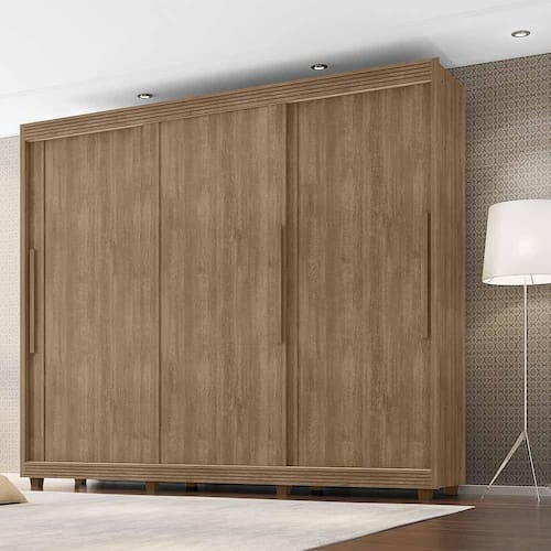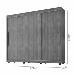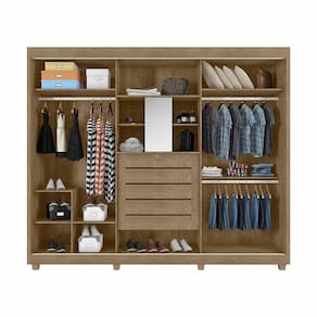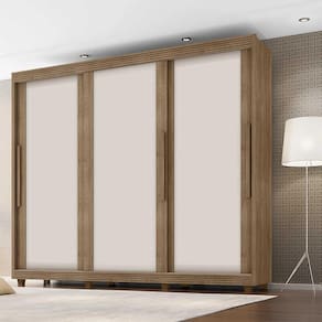 Características do Produto : - 100% MDF - 3 Portas de Correr com Espelho - 5 Gavetas, uma Contendo Fechadura e chave. - Pés em Madeira - Corrediça telescópica nas gavetas - Peças internas em 15mm. - Portas em 9mm. - Moldura em 25mm. - Cabideiros e acessórios metálicos