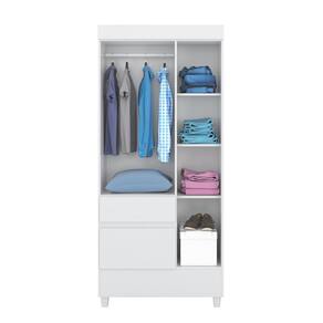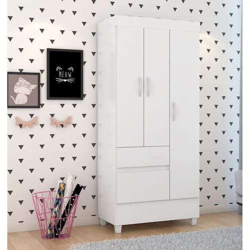Estrutura em MDP Revestimento em pintura UV Cabideiro em madeira revestido Gavetas externa com corrediças metálicas Portas de giro com dobradiças metálicas Puxadores em plástico ABS. Pés em PVC que ajudam proteger o móvel da umidade. Dimensões Roupeiro Wi nd - 32860 Altura: 181cm Largura: 80cm Profundidade: 47cm