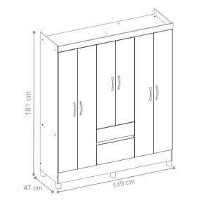 Feito em MDP, além de possuir6 portas, 2 gavetas,1 prateleiras e 3 cabideiros.