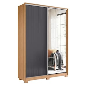 Guarda Roupa Frizatto 2 Portas Deslizantes Flex Freijó/titanium Com Espelho - Móveis Albatroz Freijó/titanium