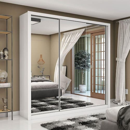 Guarda Roupa Galaxy 3 Portas De Correr Com Espelho Galaxy Branco O Guarda Roupa Galaxy com 3 Portas de Correr, acompanha 4 espelhos em cada porta, que alem de serem funcionais, trazem a sensacao de amplitude, principalmente em ambientes menores. Possui em seu interior 4 gavetas e 4 prateleiras para guardar suas roupas de cama, banho e o que mais for preciso, com a elegancia e qualidade. Caracteristicas: Portas: 3 Gavetas: 4 Prateleiras: 4 Com espelho: sim