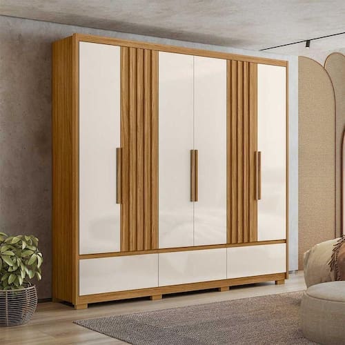 O Guarda-Roupa Amazonas combina beleza e funcionalidade. Com 6 portas, sendo 2 delas com detalhes ripados, ele oferece versatilidade na montagem, permitindo um toque de exclusividade para o seu espaço. Suas divisórias foram projetadas para garantir uma organização perfeita, com 5 gavetas 2 internas e 3 externas que facilitam o acesso e a organização dos seus itens do dia a dia. Além disso, o guarda-roupa conta com 3 cabideiros, sendo um deles dedicado a roupas longas, e 9 nichos que ajudam a manter o ambiente bem organizado e funcional. Com essas características, o Guarda-Roupa Amazonas é ideal para quem busca um móvel elegante e eficiente.
