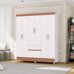Guarda Roupa Ideal Plus 6 Portas e 2 Gavetas - Branco / Camarim - Vila Rica
