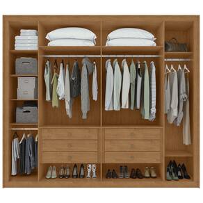 Características: Produto em MDF com chapas de 15mm Pintura U.V. e acabamento em micro textura Puxadores em MDF com 1,00 metro 06 portas metálicas de 35mm Espaço para roupas longas Opção de sapateira, gavetas, espelho e pés Espelho e porta-objetos interno inclusos 03 opções de interno Gavetas com corrediças telescópicas, com puxadores em metal e com distanciadores em MDF Espaço para sapatos