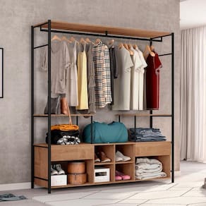 Este Roupeiro é a aposta certa para quem quer um móvel estiloso com design industrial, saindo do tradicional.