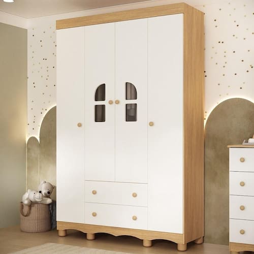 Criado para acompanhar os primeiros capítulos da infância, o Guarda-roupa Infantil 122cm com Vidro 4 Portas e 2 Gavetas Aurora Multimóveis MP4498 une charme, organização e aquele sentimento de carinho que todo quarto infantil precisa. Um móvel que acolhe, decora e simplifica tudo no mesmo lugar.
