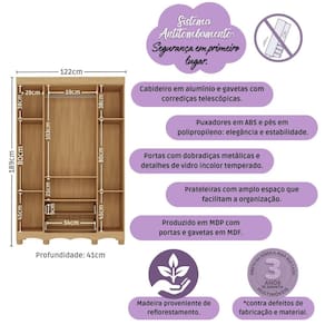 - 4 portas e 2 gavetas (frontais em MDF): amplo espaço interno para organizar roupinhas e acessórios.