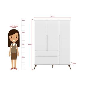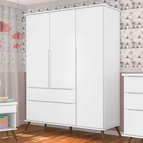 Guarda Roupa Infantil 2 Gavetas 3 Portas Roupeiro Bebê Retrô Com Pés Melinda Bco - Phoenix Baby - Branco
