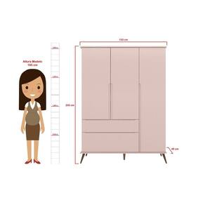Guarda Roupa Infantil 2 Gavetas 3 Portas Roupeiro Retrô Com Pés Melinda Rsê - Phoenix Baby