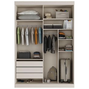 Guarda-Roupas Infantil 2 Portas 1 Porta com Espelho Samambaia Teen CabeCasa MadeiraMadeira Off White. Um quarto moderno precisará de um móvel diferenciado, o Guarda Roupas 2 portas de correr Samambaia Teen traz a combinação perfeita, com ótima disposição interna e modernidade, esse móvel faz parte de uma linha de produtos que está disponível no mercado, sendo assim uma linha completa para formar seu ambiente e para total conforto, modernidade e durabilidade, o armário possui 2 portas de correr, com opções com e sem espelho, a porta conta com detalhes ripado em MDF que é uma tendência, tornando o móvel moderno, ele é confeccionado em MDP de 15mm e MDF para maior resistência, possui várias repartições para armazenar roupas e objetos, molduras nas portas em MDF 25 mm. Materiais de primeira qualidade que respeitam o meio ambiente.