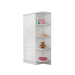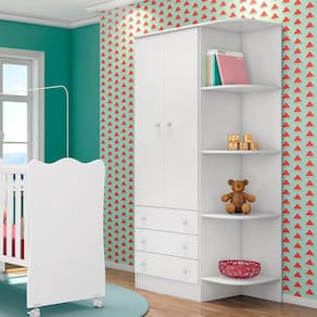 O Guarda Roupa com 2 Portas, 3 Gavetas e Cantoneira Doce Sonho, é ideal para dormitórios pequenos que precisam de otimização do espaço. Possui gavetas com excelente profundidade e prateleiras estrategicamente posicionadas para melhor acomodação dos itens do bebê. Sua cantoneira acoplada, é perfeita para objetos de decoração. Os puxadores duplos com formato de estrela, deixam o ambiente mágico.