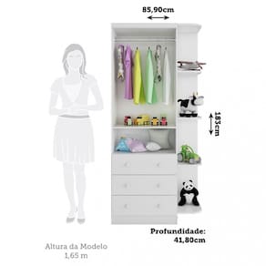 Caracter?sticas: 2 Portas 3 Gavetas Acabamento pintura UV at?xica 1 Cabideiro Met?lico Corredi?as met?licas telesc?picas Dobradi?as met?licas simples Espessuras estrutura 12mm Estrutura 100 MDF de reflorestamento Estrutura do Fundo HDF 3mm Prateleiras 5, sendo 4 externas e 1 interna Bordas das prateleiras externas arredondadas e com perfil PVC Puxadores pontual externo em pl?stico Suporta at? 4kg por gaveta, 5kg por prateleira interna e 1kg por prateleira externa