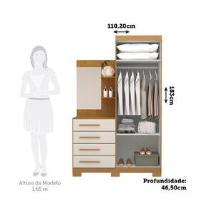 O Guarda Roupa 2 portas com cômoda Auris garante ao seu quarto mais beleza e praticidade ao seu dia-a-dia. Produzido em 100% MDF com excelente espaço interno, gavetas espaçosas com corrediças telescópicas metálicas, possui penteadeira com espelho, cabideiro em alumínio, possui pés que facilitam a limpeza abaixo do móvel. Acabamento da Prateleira: Pintura UV Escala de Brilho da Prateleira: Semi-Brilho Acabamento da Gaveta: Pintura UV Escala de Brilho da Gaveta: Semi-Brilho Possui Organizador de Gaveta: Não Acabamento da Porta: Pintura UV Escala de Brilho da Porta: Semi-Brilho Material do Puxador da Porta: MDF Acabamento dos Pés: Pintura Altura do Espelho: 60 cm Altura dos Pés: 5 cm Altura Máxima dos Pés: 5.0000 codigo_ean: 7900288191427 Complexidade da Montagem: Média: pode ser montado por mais de uma pessoa e/ou necessite de maior conhecimento para montagem Cor: Cinamomo/Off White Cor da Porta: Off White Cor do Produto: Cinamomo/Off White Cor do Puxador: Marrom Cor Flex: Não Cor Interna: Off White Escala de Brilho: Semi-Brilho Espessura do Espelho: 3 mm Formato do Espelho: Retangular Gaveta com Chave: Não Guarda-Roupa Suporta Até (kg): 60 kg Itens Inclusos: 1 Guarda-Roupa com Cômoda, Kit Ferragens e Manual de Montagem Largura do Espelho: 35 cm Linha ou Coleção: Auris Manual de Montagem e Instalação: https://product-hub-prd.madeiramadeira.com.br/724094909/documents/06ac5e63-8d83-4691-9fe0-5d027a514a9d3057995453317520064117677.pdf Marca: Espresso Móveis Material da Gaveta: MDF Material da Porta: MDF Material da Prateleira: MDF Material dos Pés: ABS Material Principal: MDF modular: Não Montagem Flex: Não Necessita Montagem: Sim Nicho com Cabideiro: Não Origem do Produto: Nacional Peso: 58,8 kg Peso Máximo por Gaveta: 5 kg Peso Máximo por Prateleira: 5 kg Porta Janelada: Não Possui Calceiros: Não Possui Capelinha: Não Possui Ganchos: Não Possui Nichos: Não Possui Penteadeira: Sim Possui Pés: 06 Possui Portas: Sim Possui Prateleiras: Sim Produto Montado: Sim Quantidade de Cabideiros: 01 Cabideiro Quantidade de Espelho: 01 Quantidade de Gavetas: 04 Gavetas Quantidade de Prateleiras: 02 Prateleiras Recomendações de Uso, Manutenção e Limpeza: Para limpar não use nenhum tipo de produto, tais como sabão, esponja de aço, álcool e lustra-móveis. Use somente uma flanela seca. Não molhe nem exponha o móvel à umidade ou a luz solar diretamente ou outra forma de calor. Não encoste o móvel na parede. Não o arreste. Se precisar mudar o móvel de lugar, esvazie por completo o móvel, não o arraste, com ajuda de outras pessoas suspenda o móvel de forma segura e o posicione no lugar desejado. Sapatas Niveladoras: Não Sistema de Montagem: Parafusos, Minifix e Cavilhas Suporta Até (kg): 60 kg Tipo de Corrediça da Gaveta: Metálica Telescópica Tipo de Dobradiça/Corrediça da Porta: Metálica Tipo de Fixação do Espelho: Parafusos Tipo de Gaveta: Externa Tipo de Guarda-Roupa: Infantil Tipo de Puxador da Porta: Externo