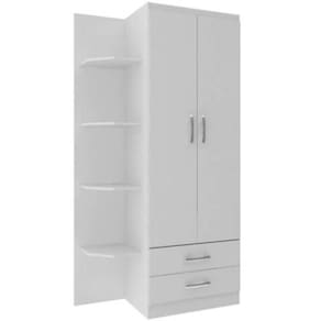 MEDIDAS Altura 183 cm Comprimento 86 cm Largura 40 cm CARACTERÍSTICAS Modelo Guarda Roupa com Cantoneira Tipo do produto Guarda Infantil Ambiente Quarto Material MDP Gavetas 02 Cabideiro 01 Prateleiras 05 Tipo de Porta Bater Garantia 3 meses INFORMAÇÕES IMPORTANTES Objetos decorativos que porventura apareçam na foto, não acompanham o produto. Não nos responsabilizamos pela montagem/instalação dos produtos. Montagens, desmontagens e instalações são responsabilidades do cliente. Indicamos que contrate uma empresa de montagem ou um montador de sua confiança. Além disso, favor verificar se os pés e acessórios estão dentro do forro inferior do produto. Em suma, todas as informações divulgadas sobre o produto são de responsabilidade do Fabricante. As cores do produto podem variar de acordo com o seu monitor, a iluminação do ambiente em que você está e até mesmo a sua percepção visual. Além da cor, pequenos detalhes e acabamentos podem não ficar evidentes na foto, por isso as imagens são meramente ilustrativas.