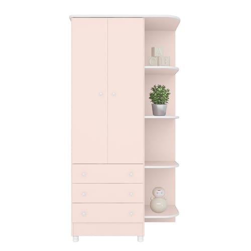 Guarda Roupa Infantil 2 Portas e 3 Gavetas Doce Sonho com Nicho e Pés - Qmovi - Rosa