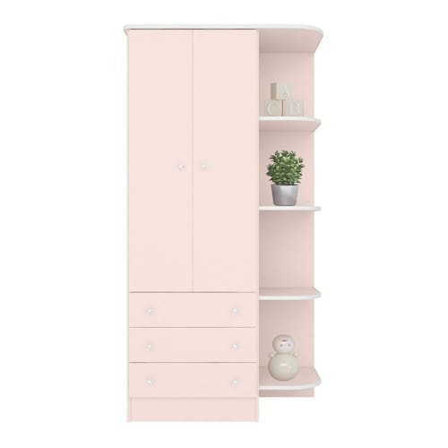 Guarda Roupa Infantil 2 Portas E 3 Gavetas Doce Sonho Rosa Acetinado Com Nicho - Qmovi Rosa Acetinado Guarda Roupa Infantil 2 Portas e 3 Gavetas Doce Sonho com Nicho - Qmovi O Guarda-roupa Doce Sonho é uma boa opção para organizar e decorar o quartinho do bebê. Ele conta com nichos na lateral e um excelente espaço interno. Seu design sofisticado trará requinte e praticidade para o seu dia a dia. ESPECIFICAÇÕES: - Estrutura em MDP - Pintura UV atóxica - 2 Portas - 3 Gavetas - Corrediças metálicas - Puxadores em forma de estrela - Prateleiras - Cabideiro - Maior organização e praticidade