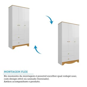 O Guarda Roupa Infantil B?n ? um produto em MDF desenvolvido com estilo proven?al seus espa?os e divis?rias pensadas para uma perfeita organiza??o. Sua pintura ? at?xica possui 3 portas com dobradi?as met?licas 3 prateleiras cabideiro met?lico puxadores pl?sticos e 2 gavetas com corredi?as telesc?picas. Possui sistema antitombamento que proporciona maior seguran?a aos pequenos.