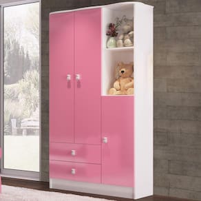 O(a) Guarda-Roupa Infantil 3 Portas 2 Gavetas Rosa 1410 - Percasa é produzido em MDP na escala de brilho Semi-Fosco, e possui um grau de dificuldade de montagem: Médio.