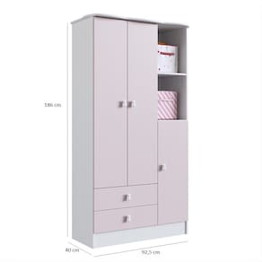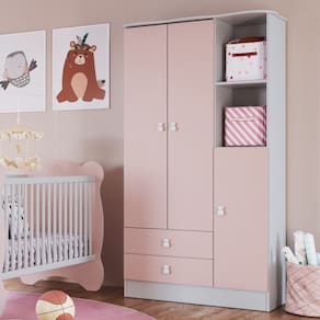 Guarda Roupa Infantil 3 Portas 2 gavetas Tedy Percasa O Guarda-Roupa 3 Portas e a opcao perfeita para quem busca funcionalidade, resistencia e um toque delicado na decoracao do quarto do bebe. Produzido em MDP BP, o movel oferece durabilidade e acabamento de alta qualidade, garantindo beleza no dia a dia. Conta com nichos abertos, ideais para acomodar itens decorativos ou de uso frequente, deixando tudo sempre a mao. Suas gavetas possuem corredicas telescopicas, que proporcionam abertura suave e total, enquanto as dobradicas metalicas garantem firmeza e longa vida util as portas. O destaque fica por conta do puxador em formato de urso, que adiciona um charme especial e combina perfeitamente com o ambiente infantil.
