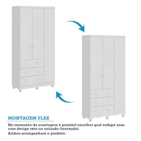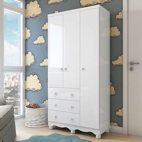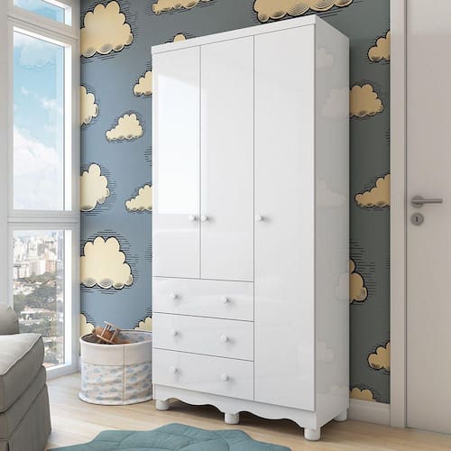 Guarda Roupa Infantil 3 Portas 3 Gavetas Junior New Móveis Peroba - Branco