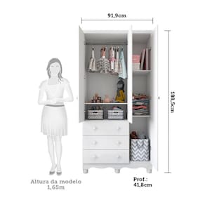 O Guarda Roupa da linha Junior é produzido 100 em MDF, possui 03 portas, cabideiro metálico, puxadores plásticos, corrediças Telescópica