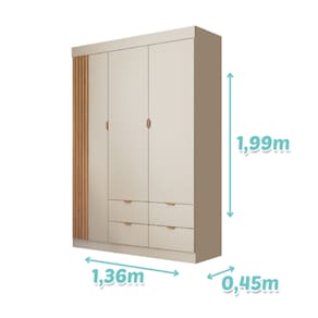 Guarda Roupa Infantil 3 Portas 4 Gavetas Roupeiro Ayla - Phoenix Baby