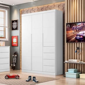 Características: Estrutura em MDF Acabamento em Pintura UV 3 Portas Dobradiças metálicas 4 Gavetas Corrediças telescópicas 4 Nichos 9 Prateleiras Cabideiro em alumínio
