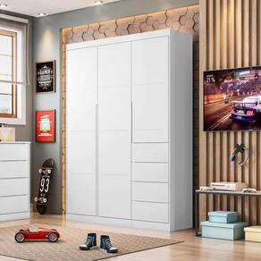 Características: Estrutura em MDF Acabamento em Pintura UV 3 Portas Dobradiças metálicas 4 Gavetas Corrediças telescópicas 4 Nichos 9 Prateleiras Cabideiro em alumínio