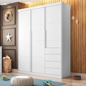 Características: Estrutura em MDF Acabamento em Pintura UV 3 Portas Dobradiças metálicas 4 Gavetas Corrediças telescópicas 9 Prateleiras 4 Nichos Puxadores em Cava Cabideiro em alumínio