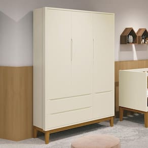 Guarda Roupa Infantil 3 Portas Classic com Pés Amadeirado - Reller Móveis - Bege
