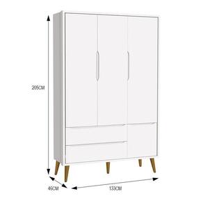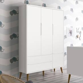 Guarda Roupa Infantil 3 Portas Theo Retrô Branco Fosco Com Pés Amadeirado - Reller Móveis Branco Fosco - Blush