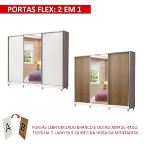 - Três (3) portas de correr, sendo duas (2) de madeira e uma (1) com espelhos