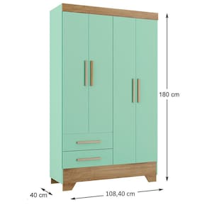 O(a) Guarda-Roupa Infantil 4 Portas 2 Gavetas Verde - Loja é produzido em MDF e MDP na escala de brilho Fosco, e possui um grau de dificuldade de montagem: Médio.