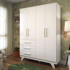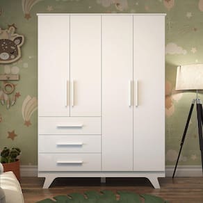 O Guarda Roupas Kakau Retrô encanta pelas suas linhas retas, inspirada no estilo passado com um toque de modernidade para o quarto do seu Bebê. Ainda conta com muito espaço para manter tudo bem organizado. Com pintura UV atóxica, 3 gavetas que deslizam suavemente em corrediças metálicas telescópicas, conforto, durabilidade e segurança no abrir e fechar. Puxadores em MDF revestidos em perfeita harmonia com o produto. Conta ainda com 4 portas, 2 cabideiros metálicos e 5 prateleiras. Qualidade de ser produzido em 100% MDF. Acabamento da Gaveta: Pintura UV Acabamento da Porta: Pintura UV Acabamento da Prateleira: Pintura UV Acabamento dos Pés: Pintura Acompanha Manual de Instalação: Sim Altura dos Pés: 13.7 Ambiente: Quarto de Bebê Ambiente Principal: Quarto de Bebê Complexidade da Montagem: Alta: deve ser montado por um montador especializado Cor: Branco Brilho Cor do Produto: Branco Brilho Cor Interna: Linho Escala de Brilho: Brilhante Escala de Brilho da Gaveta: Brilhante Escala de Brilho da Porta: Brilhante Escala de Brilho da Prateleira: Semi-Brilho Gaveta com Chave: Não Guarda-Roupa Suporta Até (kg): 60 Informações Complementares: Fundo em HDF 3mm. Pintura atóxica. Itens Inclusos: 1 Guarda Roupa, Kit Ferragens e Manual de Montagem. Linha ou Coleção: Kakau Retrô Manual de Montagem e Instalação: https://cdn2.madeiramadeira.com.br/atributo/moveis-peroba/1080364-285198.pdf Material da Gaveta: MDF Material da Porta: MDF Material da Prateleira: MDF Material do Puxador da Gaveta: MDF Material do Puxador da Porta: MDF Material dos Pés: MDF Material Principal: MDF Montagem Flex: Necessita Montagem: Sim Origem do Produto: Nacional Peso: 103.31 Peso Máximo por Gaveta: 4 kg Peso Máximo por Prateleira: 5 Possui Cabideiros: 02 Possui Calceiros: Não Possui Espelho: Não Possui Possui Organizador de Gaveta: Não Possui Pés: 5 Possui Portas: 04 Possui Prateleiras: 05 Recomendações de Uso, Manutenção e Limpeza: Para limpeza utilize somente pano limpo e macio, ligeiramente umedecido em água (apenas o bastante para remover a poeira), seguido de um pano seco. Resistente à Chuva: Não Sapatas Niveladoras: Não Sistema de Montagem: Parafusos autoatarraxantes, conjuntos minifix, cavilhas de madeira, acessórios plásticos e metálicos Tipo de Corrediça da Gaveta: Metálica Telescópica Tipo de Dobradiça/Corrediça da Porta: Metálica Tipo de Gaveta: Externa Tipo de Guarda-Roupa: Bebê Tipo de Madeira Maciça: Tipo de Madeira Maciça da Gaveta: Tipo de Madeira Maciça da Porta: Tipo de Madeira Maciça da Prateleira: Tipo de Puxador da Gaveta: Externo Tipo de Puxador da Porta: Externo