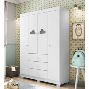 Guarda Roupa Infantil 4 Portas 3 Gavetas Roupeiro Ane Bebê Detalhe Nuvem Bco - Phoenix Baby