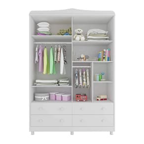 Guarda Roupa para quarto de bebê Noah, estilo Provençal, para deixar o quartinho do seu pequeno lindo e organizado. Produzido em 100% MDF, contém 4 portas sendo 2 janeladas com PETG Cristal e 2 lisas, 4 gavetas com corrediças telescópicas, sua pintura é atóxica. Prateleiras e cabideiros completam o móvel para uma perfeita organização. Acabamento da Gaveta: Pintura UV Acabamento da Porta: Pintura UV Acabamento da Prateleira: Pintura UV Acabamento dos Pés: Verniz Acompanha Cama Auxiliar: Acompanha Colchão: Altura da Cama: Altura do Espelho: Altura do Espelho 01: Altura do Espelho 02: Altura do Espelho 03: Altura do Espelho 04: Altura do Espelho 05: Altura do Espelho 06: Altura dos Pés: 9 Ambiente Principal: Quarto Infantil Cama Auxiliar Acompanha Colchão: Cama Auxiliar Suporta Até (kg): Cama Suporta Até (kg): Complexidade da Montagem: Alta: deve ser montado por um montador especializado Cor: Branco Cor do Produto: Branco Cor Flex: Cor Interna: Branco Escala de Brilho: Brilhante Escala de Brilho da Gaveta: Brilhante Escala de Brilho da Porta: Brilhante Escala de Brilho da Prateleira: Semi-Brilho Espessura do Espelho: Fita Integrada: Formato do Espelho: Gaveta com Chave: Não Guarda-Roupa Suporta Até (kg): 60 Informações Complementares: Itens Inclusos: 1 Guarda Roupa e Manual de Montagem Largura da Cama: Largura do Espelho: Largura do Espelho 01: Largura do Espelho 02: Largura do Espelho 03: Largura do Espelho 04: Largura do Espelho 05: Largura do Espelho 06: Linha ou Coleção: Noah Provençal Manual de Especificação Técnica: Manual de Montagem e Instalação: https://cdn2.madeiramadeira.com.br/atributo/moveis-peroba/1080288-590401.pdf Material da Gaveta: MDF Material da Porta: MDF Material da Prateleira: MDF Material do Puxador da Gaveta: Plástico Material do Puxador da Porta: Plástico Material dos Pés: Plástico Material Principal: MDF Montagem Flex: Necessita Montagem: Sim Origem do Produto: Nacional Peso: 115,57 Peso Máximo por Gaveta: 4 Peso Máximo por Prateleira: 5 Possui Cabideiros: 02 Possui Calceiros: Não Possui Espelho: Não Possui Possui Organizador de Gaveta: Não Possui Pés: 06 Possui Portas: 04 Possui Prateleiras: 05 Profundida de Cama: Recomendações de Uso, Manutenção e Limpeza: Para limpeza utilize somente pano limpo e macio, ligeiramente umidecido em água (apenas o bastante para remover a poeira), seguido de um pano seco. Sapatas Niveladoras: Não Sistema de Montagem: Parafusos altoatarraxantes, conjuntos minifix, cavilha mandeira, acessórios plásticos/metálicos Tamanho do Colchão Indicado (L x C): Tamanho do Colchão Indicado Cama Auxiliar: Tipo de Corrediça da Gaveta: Metálica Telescópica Tipo de Dobradiça/Corrediça da Porta: Metálica Tipo de Estrado: Tipo de Fixação do Espelho: Tipo de Gaveta: Externa Tipo de Guarda-Roupa: Infantil Tipo de Madeira Maciça: Tipo de Madeira Maciça da Gaveta: Tipo de Madeira Maciça da Porta: Tipo de Madeira Maciça da Prateleira: Tipo de Madeira Maciça do Puxador da Gaveta: Tipo de Madeira Maciça do Puxador da Porta: Tipo de Madeira Maciça dos Pés: Tipo de Puxador da Gaveta: Externo Tipo de Puxador da Porta: Externo