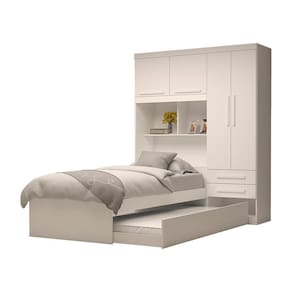 O guarda Roupa 4 portas Bemzi é compacto e completo. Produzido em 100% MDF, oferece maior qualidade e durabilidade. Estrados e barrotes da bicama são Madeira Maciça Pinus. Possui Baú na cabeceira com abertura auxiliada por dobradiças, 2 gavetas com corrediças telescópicas metálicas, cabideiro em alumínio e nichos externos para decoração ou organização. Acompanha suportes bicolor para que você possa escolher qual cor usar no momento da montagem (branco, rosa, azul ou lilás). A bicama pode ser montada para os dois lados (direito e esquerdo), ou ainda sem ela, para utilização com cama box solteiro. Acabamento da Prateleira: Pintura UV Escala de Brilho da Prateleira: Semi-Brilho Acabamento da Gaveta: Pintura UV Escala de Brilho da Gaveta: Semi-Brilho Possui Organizador de Gaveta: Não Acabamento da Porta: Pintura UV Escala de Brilho da Porta: Semi-Brilho Acompanha Cama Auxiliar: Sim Acompanha Colchão: Não Altura da Cama: 39 cm Cama Auxiliar Acompanha Colchão: Não Cama Auxiliar Suporta Até (kg): 90 kg Cama Suporta Até (kg): 90 kg codigo_ean: 7900288191687 Complexidade da Montagem: Alta: deve ser montado por um montador especializado Cor: Branco/Rosa/Azul/Lilas Cor da Porta: Branco Cor do Produto: Branco/Rosa/Azul/Lilás Cor do Puxador: Branco Cor Flex: Sim Cor Interna: Branco Escala de Brilho: Semi-Brilho Gaveta com Chave: Não Guarda-Roupa Suporta Até (kg): 90 kg Informações Complementares: Possui Baú na cabeceira. Disponibilidade de montagem do roupeiro para os dois lados (direito e esquerdo). O roupeiro pode ser montado sem cama, para utilização de cama box. Itens Inclusos: 1 Guarda-Roupa com Cama de Solteiro, Kit Ferragens e Manual de Montagem Largura da Cama: 96 cm Linha ou Coleção: Bemzi Manual de Montagem e Instalação: https://product-hub-prd.madeiramadeira.com.br/954436126/documents/1a0f55ad-ad04-4ee0-a2cc-862dc15dc2003058064453317520071923428.pdf Marca: Espresso Móveis Material da Gaveta: MDF Material da Porta: MDF Material da Prateleira: MDF Material Principal: MDF modular: Não Montagem Flex: Sim Necessita Montagem: Sim Nicho com Cabideiro: Não Origem do Produto: Nacional Peso: 122,1 kg Peso Máximo por Gaveta: 5 kg Peso Máximo por Prateleira: 5 kg Porta Janelada: Não Possui Calceiros: Não Possui Capelinha: Não Possui Espelho: Não Possui Ganchos: Não Possui Penteadeira: Não Possui Pés: Não Possui Portas: Sim Possui Prateleiras: Sim Produto Montado: Sim Profundida de Cama: 189,7 cm Quantidade de Cabideiros: 01 Cabideiro Quantidade de Gavetas: 02 Gavetas Quantidade de Prateleiras: 02 Prateleiras Recomendações de Uso, Manutenção e Limpeza: Para limpar não use nenhum tipo de produto, tais como sabão, esponja de aço, álcool e lustra-móveis. Use somente uma flanela seca. Não molhe nem exponha o móvel à umidade ou a luz solar diretamente ou outra forma de calor. Não encoste o móvel na parede. Não o arreste. Se precisar mudar o móvel de lugar, esvazie por completo o móvel, não o arraste, com ajuda de outras pessoas suspenda o móvel de forma segura e o posicione no lugar desejado. Sapatas Niveladoras: Não Sistema de Montagem: Parafusos, Minifix e Cavilhas Suporta Até (kg): 90 kg Tamanho do Colchão Indicado (L x C): 88cm x 188cm Tipo de Corrediça da Gaveta: Metálica Telescópica Tipo de Dobradiça/Corrediça da Porta: Metálica Tipo de Estrado: Fixo Tipo de Gaveta: Externa Tipo de Guarda-Roupa: Solteiro Tipo de Puxador da Porta: Embutido