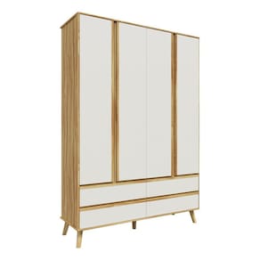 Guarda-roupa Infantil 4 Portas e 4 Gavetas Luly 100% Mdf Espresso Móveis Off White/Amêndoa - Bege